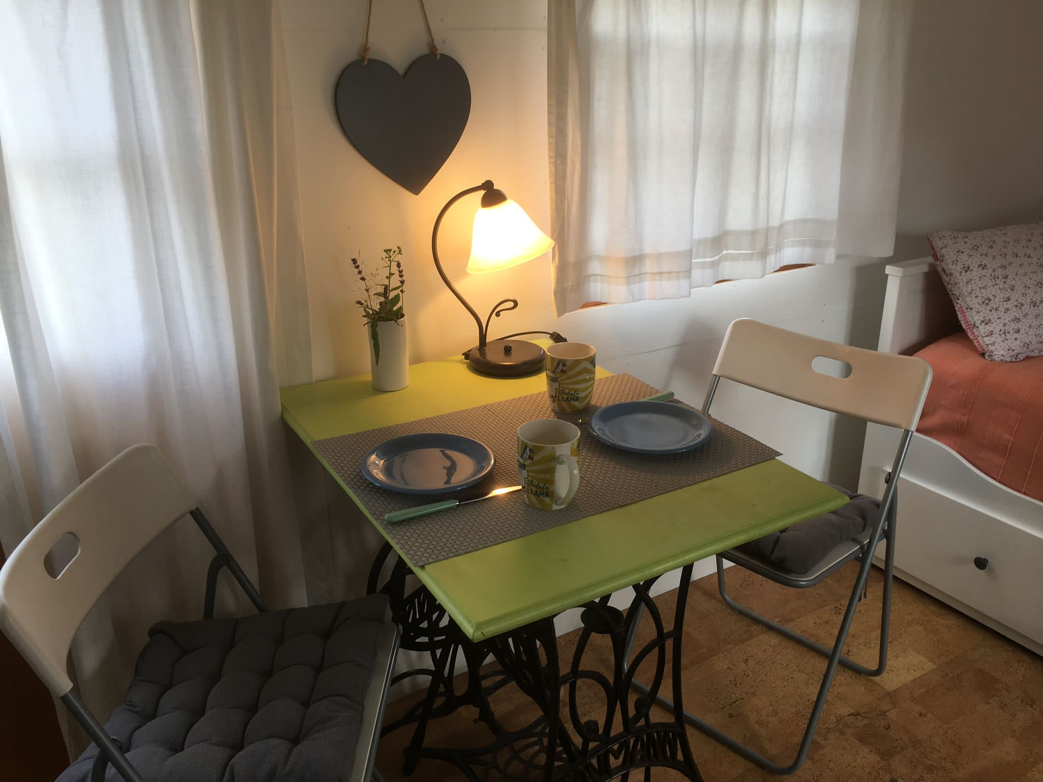 Auf der Weide hinter dem Bauernhaus steht der geräumige Zirkuswagen. Der Wagen teilt sich die Weide mit unseren Lamas und Alpakas, die tagsüber dort grasen und ruhen. Ihr seid Gäste in ihrem Zuhause. Lasst die Tiere ungestört, dann kommen sie ganz nah. Streicheln verboten.